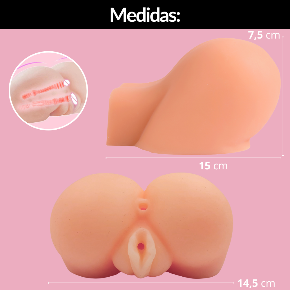 Masturbador que recrea dos partes del cuerpo femenino la vagina y el ano con textura super realista tanto en su interior como exterior para una mejor estimulación, brindando una experiencia muy similar a la penetración real, adaptable a cualquier tamaño para un ajuste perfecto, esto gracias a su flexibilidad y elasticidad. Fabricada con silicona médica hipoalergénica suave al tacto 100% amigable con el cuerpo, no solo es increíblemente suave al tacto, sino también segura para tu piel. Es impermeable para que disfrutes de ella ya sea en la ducha o en la bañera. Rompe las barreras de la monotonía con la vagina masturbadora.
